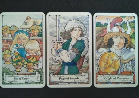 Taurus – Six of Cups, Page of Swords, Knight of Pentacles