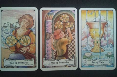 Scorpio – Two of Pentacles, Three of Pentacles, Ace of Cups