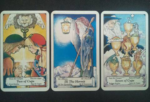 Sagitarius – Two of Cups, Hermit, Seven of Cups