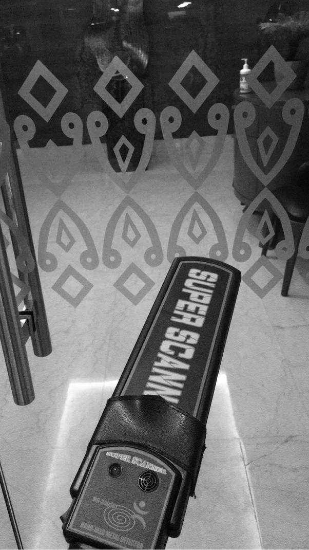 Hari ini, saya mulai merangkap kerja sebagai petugas keamanan di pintu basement menuju hotel karena seluruh petugas keamanan yang aktif terpaksa diliburkan, semuanya.