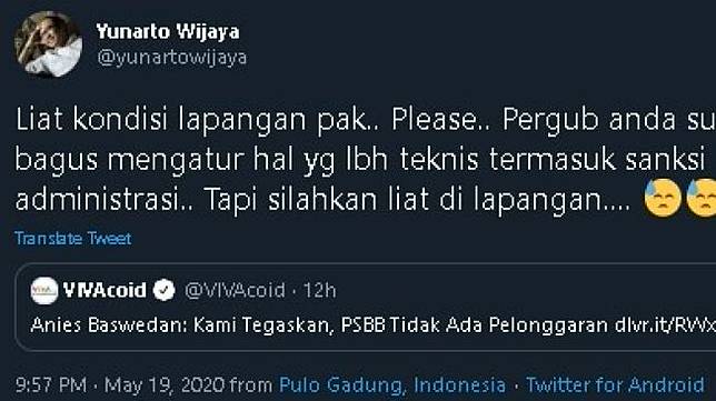 "Lihat syarat lapangan pak..Please," cuit Yunarto Wijaya misalnya dikutip Suara.Com, Rabu (20/5/2020). [Judi Togel Online]